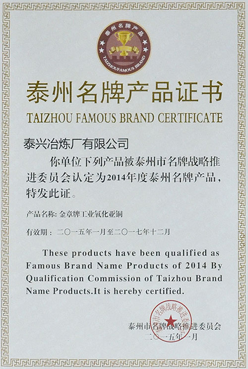 Copyright(C)2018, Taixing Smelting Plant Co., Ltd. All Rights Reserved. Supported by ChinaChemNet ChemNet Toocle Copyright Notice 備案序號:蘇ICP備10006952號-2