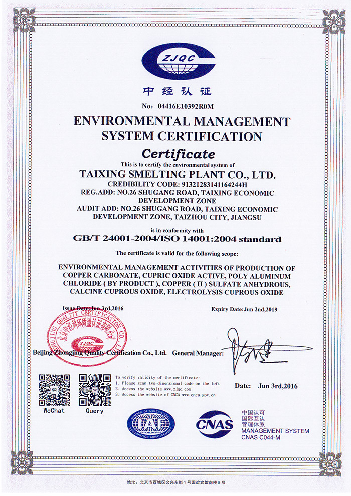 Drafting unit of "Industrial Cuprous Oxide", "Industrial Basic Copper Carbonate"...